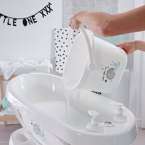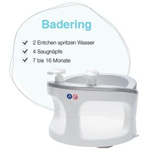 Das CLICK- Badesystem am Wannenständer ist kompatibel mit allen bébé-jou Babybadewannen sowie mit dem bébé-jou Badeeimer. Letzterer ist für Babys bis zum achten Lebensmonat geeignet. Im Badeeimer fühlen sich Babys geborgen – es erinnert sie an den Mutterleib. Viele Kinder nehmen beim Baden im Eimer auch gerne die Fötus-Haltung ein. Im Badesortiment von bébé-jou finden sich außerdem ein Badewannensitz, der in die Babywanne passt, sowie ein Badering, der Kindern im Alter von 7 bis 16 Monaten sicheren Halt in der großen Badewanne bietet.