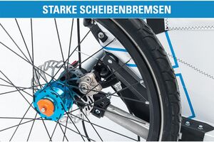 Mit wenigen Handgriffen lässt sich auf dem Fahrradanhänger ein Kinderwagen zaubern. Das individuell einstellbare, ergonomisch gestaltete Sportsitzsystem bietet dem Kind Halt und Sicherheit. Der 75 Millimeter grosse Federweg dämpft selbst grosse Stösse und