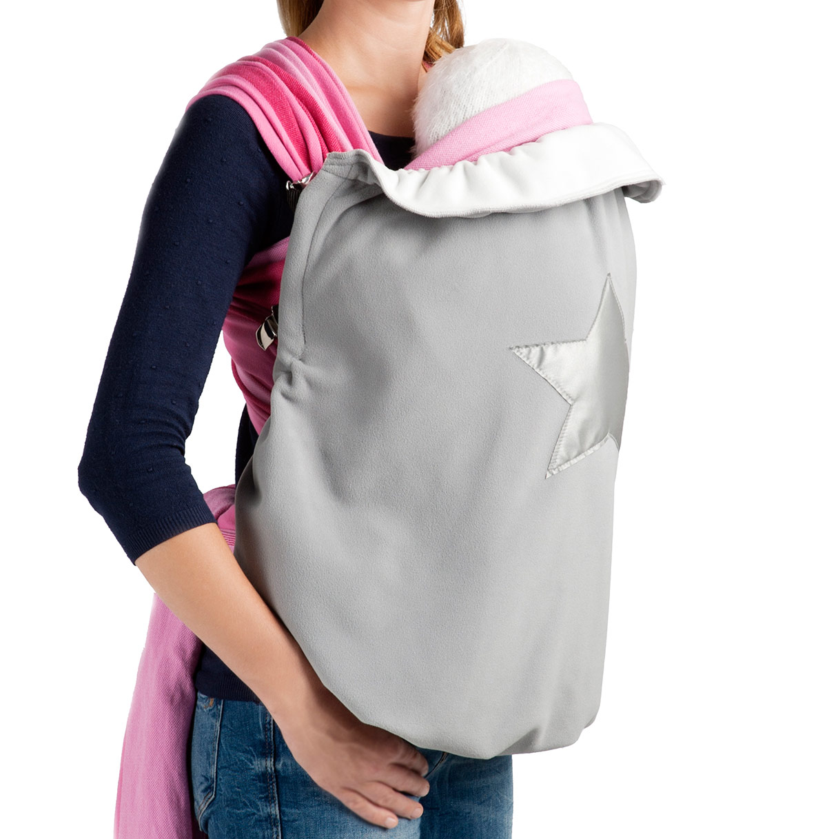 Mit dem snugbag -Tragecover kann man die eigene Jacke schließen und das Baby trotzdem schön warm und geborgen tragen. Das Besondere: Man kann das Tragecover in eine Tasche verwandeln.